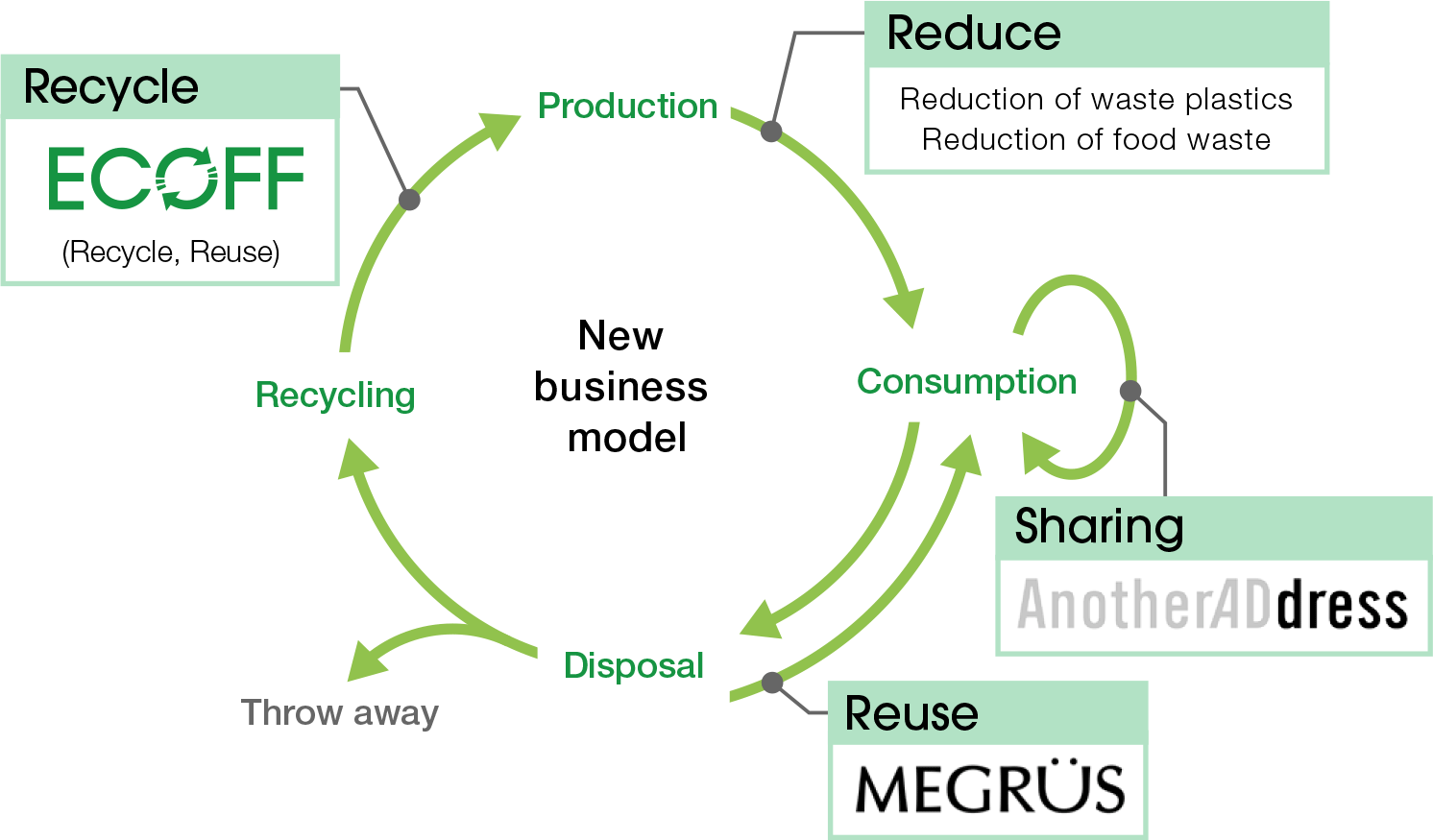 The linear economy, which is based on mass production, mass consumption, and waste disposal, has led to various global environmental issues such as resource shortages, global warming, and waste management. Against this backdrop, the importance of the circular economy is increasing, as it aims to reduce waste and achieve resource circulation. The Group will accelerate its resource recycling efforts in cooperation with customers and business partners, aiming to both reduce risks related to environmental issues and acquire new business opportunities.