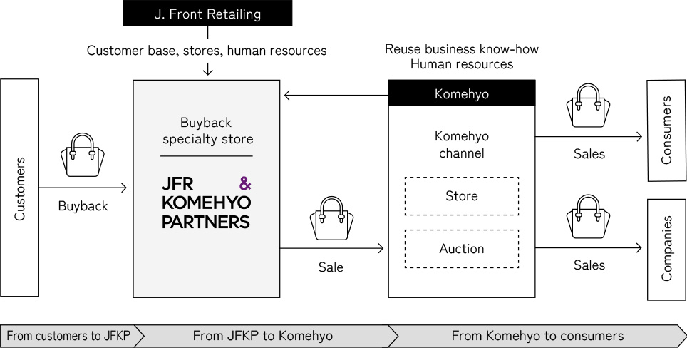 In March 2025, the Company established a joint venture, JFR & KOMEHYO PARTNERS Co., Ltd., with Komehyo Co., Ltd., to launch a reuse business. Starting in summer 2025, we plan to roll out buyback specialty stores named "MEGRÜS" at Daimaru, Matsuzakaya, and PARCO locations. By passing valuable items from person to person and encouraging their long-term use, we aim to contribute to the realization of a sustainable society.