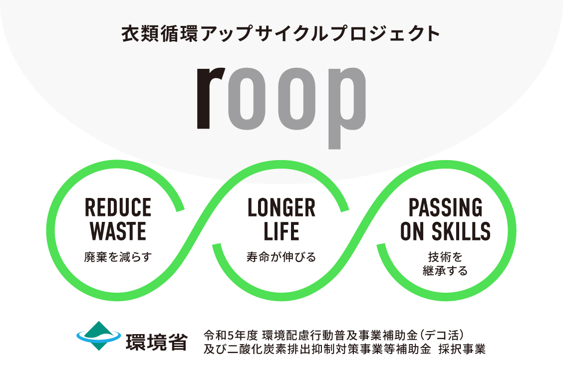 In FY2024, we were selected for Japan's Ministry of the Environment’s "Environmental Action Promotion Subsidy" and the "Carbon Dioxide Emission Reduction Measures Subsidy," as part of the Deco-Katsu Promotion Project, a national movement creating new, richer lifestyles tied to decarbonization. Through these initiatives, we launched the garment recycling and upcycling project "roop," which will continue into FY2025.