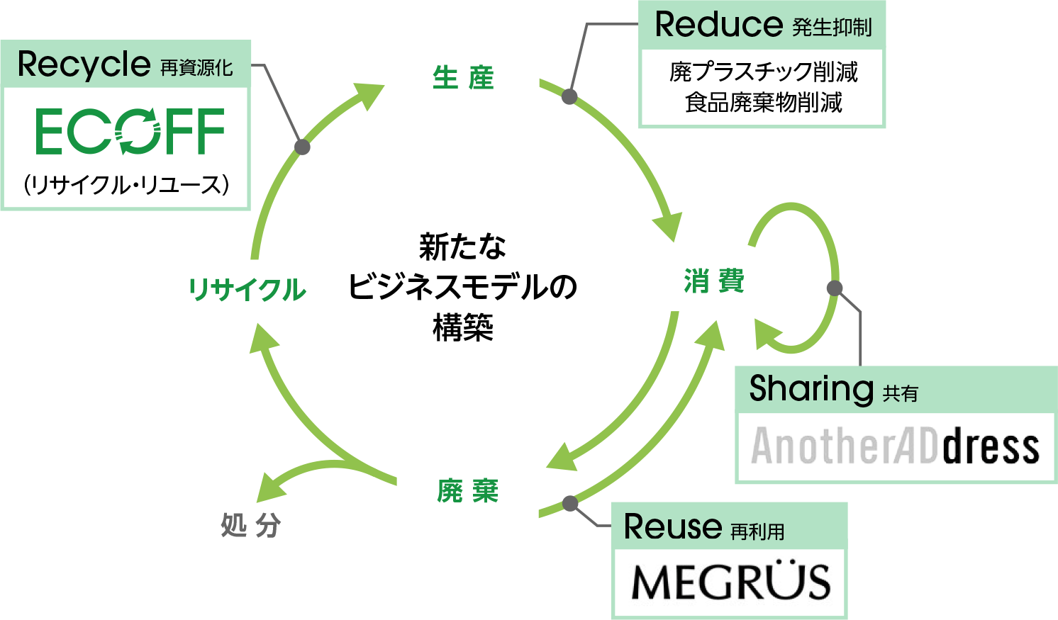 大量生産・大量消費・廃棄が前提となる直線型のリニア・エコノミーにより、資源不足、地球温暖化、廃棄物処理の問題など様々な地球環問題が深刻化する中、廃棄を減らし資源循環を実現するサーキュラー・エコノミーの重要性が高まっています。当社グループは、環境課題に係るリスク低減と、新たなビジネス機会獲得の両立を目指し、お客様やお取引先様とも協働しながら資源循環の取り組みを加速させていきます。