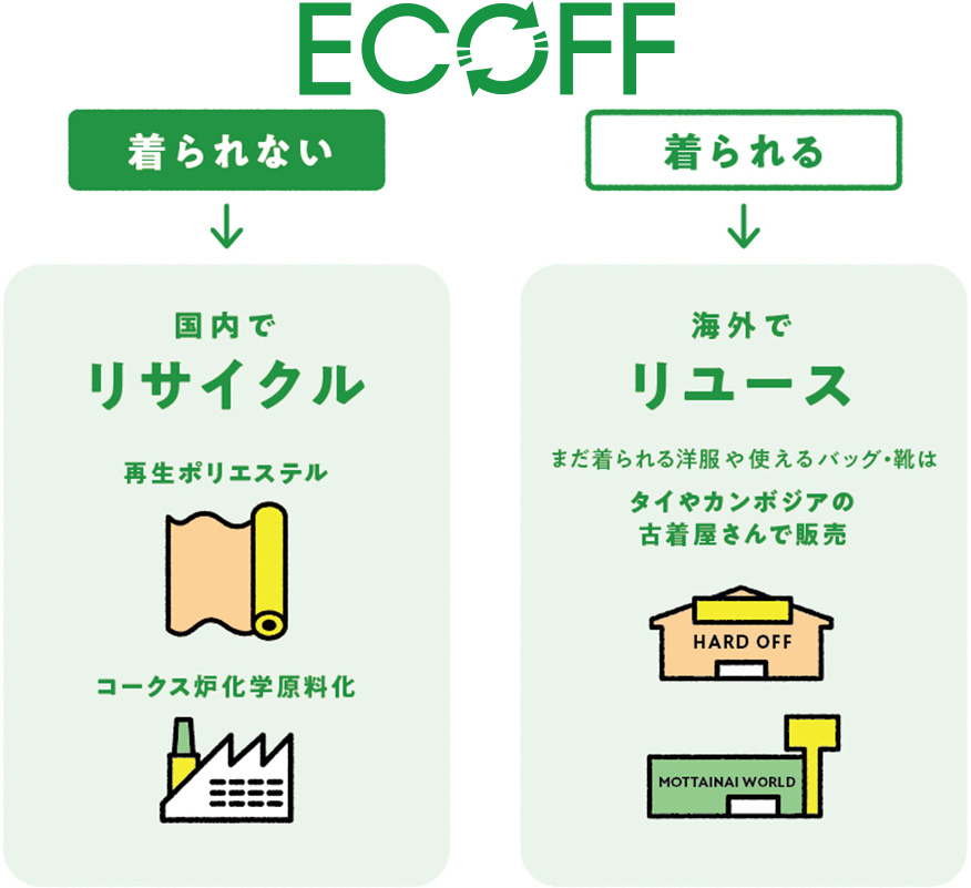 回収した衣料品・靴・バッグはこれまでも海外でリユースしていましたが、2024年春の開催からは、タイやカンボジアの古着屋を通じて必要としてくださる方々にお届けできるよう連携し、サプライチェーンの透明性を高めました。